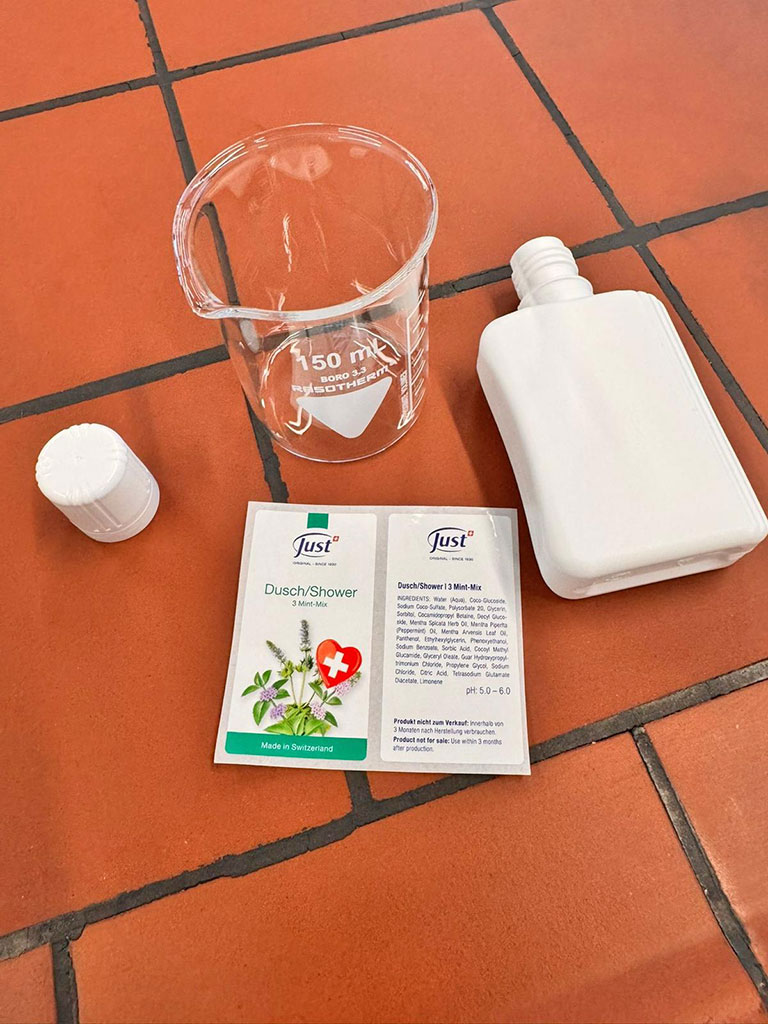 Danach ging es für uns ins Labor, wo wir unser eigenes Dusch/Shower-Produkt herstellen durften – ein kreatives und sehr spannendes Erlebnis.