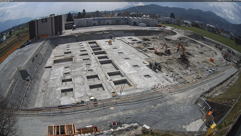 Zu den bisherigen Meilensteinen zählen unter anderem die erfolgreiche Grundwasserabsenkung mittels Wellpoint-System sowie die Bohrung von insgesamt 59 Erdsonden. Auch die Bohrpfahlwand entlang der Zollstrasse und die Stahlausfachung bei der Rondelle konnten bereits realisiert werden.